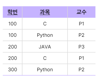수업 테이블을 분해했다가 다시 합쳤을 때(조인) 불필요한 튜플이 발생