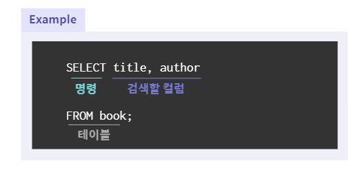 위 코드는 book 테이블에서 모든 책의 title과 author 컬럼을 검색하는 코드입니다.