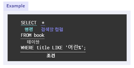 반대로 '어린%'으로 표기하여 book 테이블에서 제목(title)이 '어린'으로 시작하는 책을 검색할 수도 있습니다.
